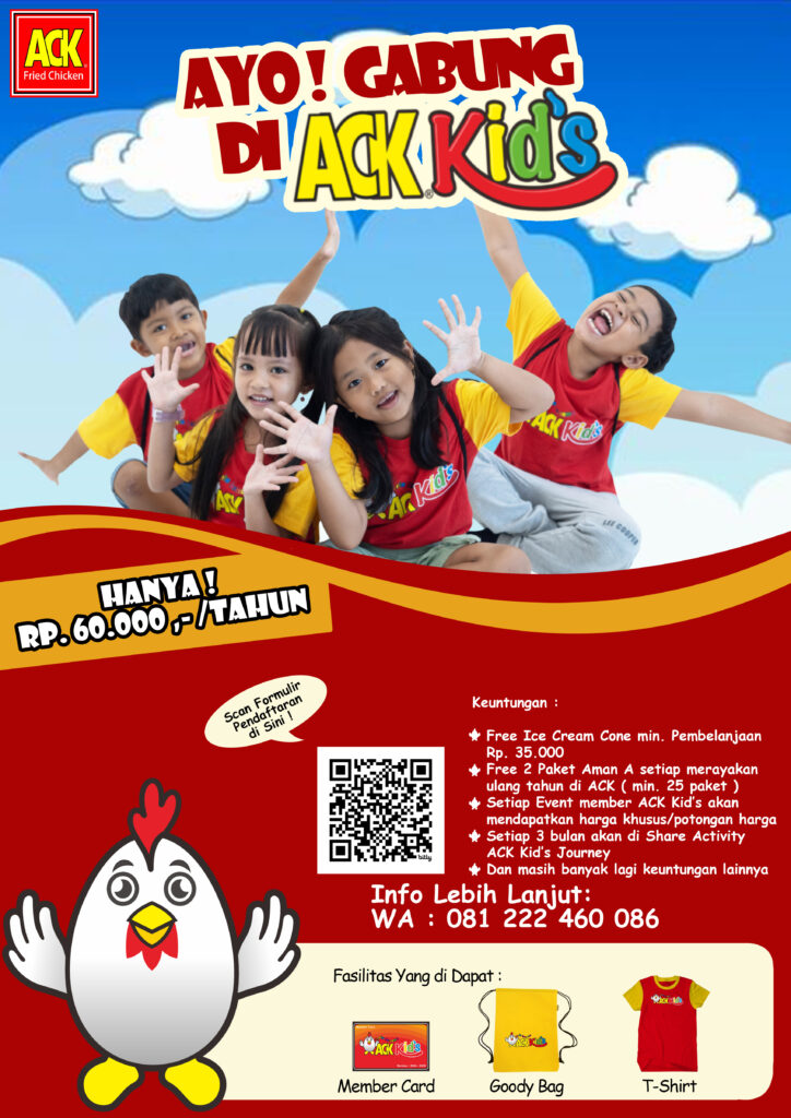 ACK Kids merupakan komunitas anak yang bertujuan untukmewadahi aktivitas dan kreatifitas anak-anak usia 2-9 Tahunprofesional di bidangnya
